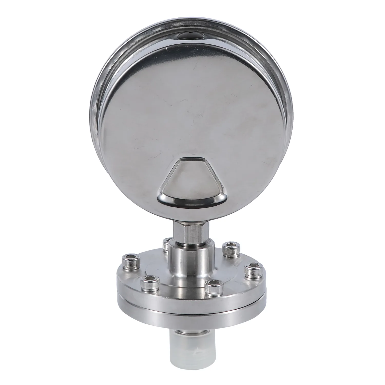 全不锈钢隔膜压力表,最大量程10 bar(1 MPa)。整体采用优质不锈钢材质,耐腐蚀,密封性强。适用于食品、医药等卫生级领域,表盘清晰,读数精准,满足严苛工况下的可靠压力监测需求。