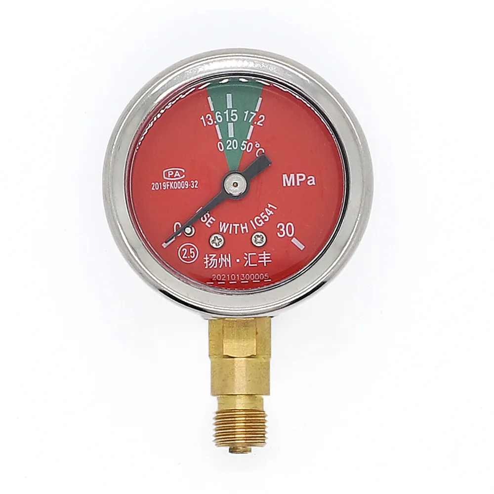 本产品是专为IG541等惰性气体灭火系统设计的高品质压力监测仪表。表盘直径50mm,采用精密2.5级机芯,确保读数准确可靠,为系统压力状态提供清晰直观的指示。