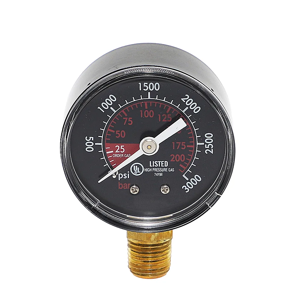 产品介绍: UL认证压力表是一种用于减压器的压力测量仪器。该产品采用黑色铁壳,径向连接,带防爆背板的设计,能够更好地保护压力表,确保其长期稳定运行。产品量程为0~20bar和0~200bar,能够满足不同场合的压力测量需求。该产品能够准确指示气罐内压缩气体的压力及输出压力,为相关领域的工作提供支持。此外,该产品还通过了UL认证,能够为客户提供更加可靠的保障。